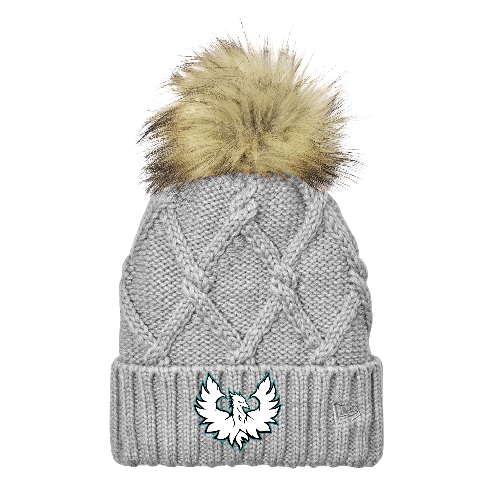 White Phoenix Logo - Faux Fur Pom Beanie